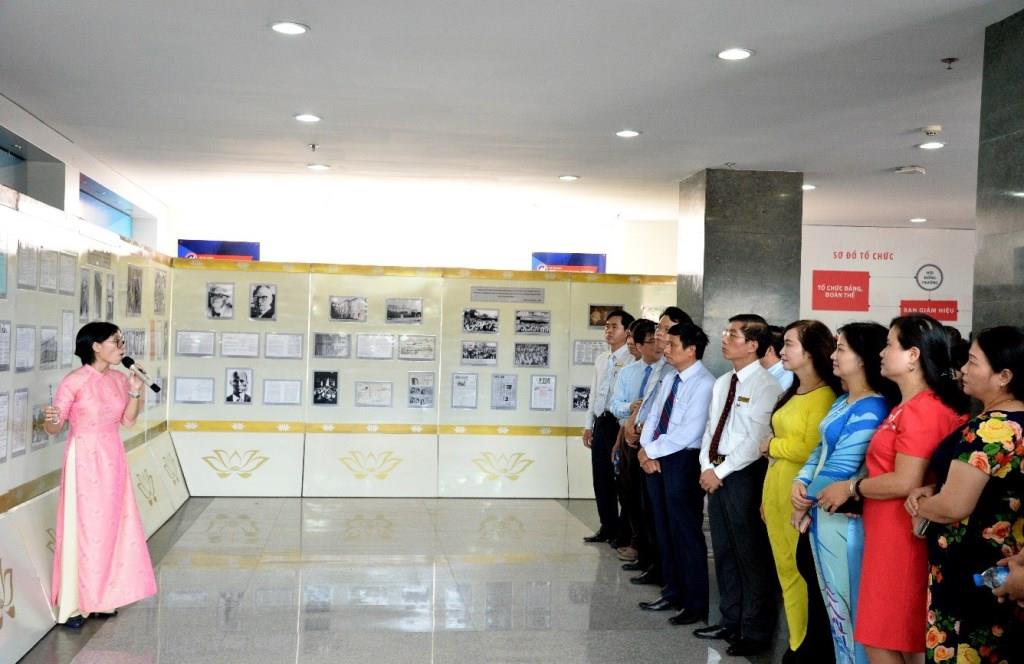 Delegation of UFM Party Committee listen to the introduction to the images of President Ho Chi Minh's career.
