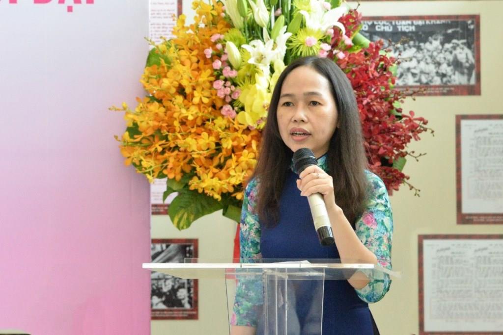 Comrade Le Ngoc Hanh, Head of the Propaganda Department, Party Committee of the Universities and Colleges of Ho Chi Minh City, speaks at the ceremony.