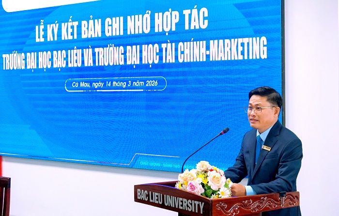 On March 14, 2026, Bac Lieu University hosted the Memorandum of Understanding (MOU) signing ceremony between the University of Finance – Marketing (UFM) and Bac Lieu University, marking a new milestone in the partnership between the two higher education institutions. The agreement aims to strengthen cooperation in education, scientific research, and community engagement, contributing to the development of human resources in the Mekong Delta region.